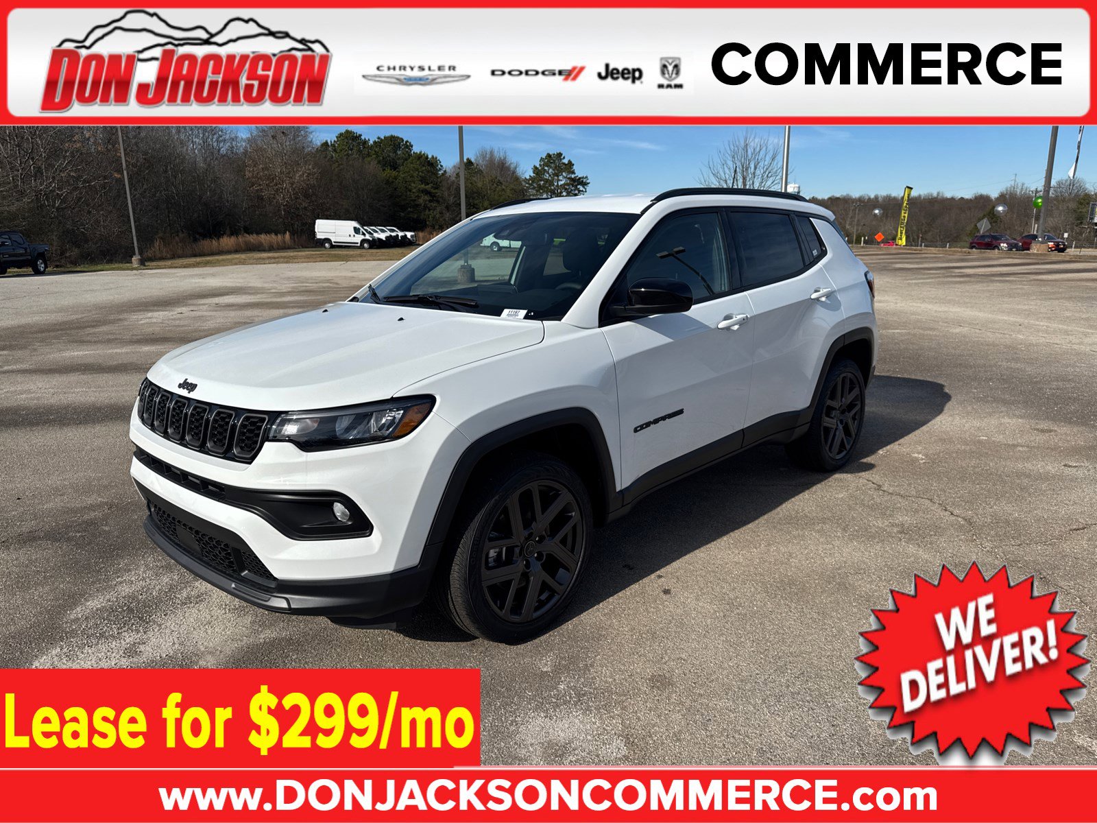 Bodystyle: Sport Utility, Drive Line: 4x4, MPG Range: 23/31 mpg, Exterior Color: Bright White, Interior Color: Black, VIN: 3C4NJDBN6TT199744,Stock #: J49, Model Code: MPJM74, Transmission: 8-Speed Automatic 8F30 Transmission, Engine: 2.0L I4 DOHC DI Turbo Engine w/ ESS, Comments: 706-335-2800. MUST MENTION OR PRESENT AD AT TIME OF PURCHASE TO RECEIVE ADVERTISED PRICE. Don Jackson Chrysler Dodge Jeep Ram Commerce offers the most competitive prices online. No need to negotiate. After over 50 years in the Automotive Industry Don Jackson has developed the most hassle free used car buying experience in the market. Our award winning Finance Department is waiting to help you secure the lowest interest rate and payment available. No time to come to the dealership, no problem! We offer transportation within 300 miles of the dealership. Call us today at 706-335-2800 and let us help you purchase the vehicle of your dreams! THE ADVERTISED PRICE INCLUDES ALL INCENTIVES INCLUDING IRS EV CREDIT BUT DOES NOT INCLUDE SALES TAX, VEHICLE REGISTRATION FEES, OTHER FEES REQUIRED BY LAW, OR FINANCE CHARGES.